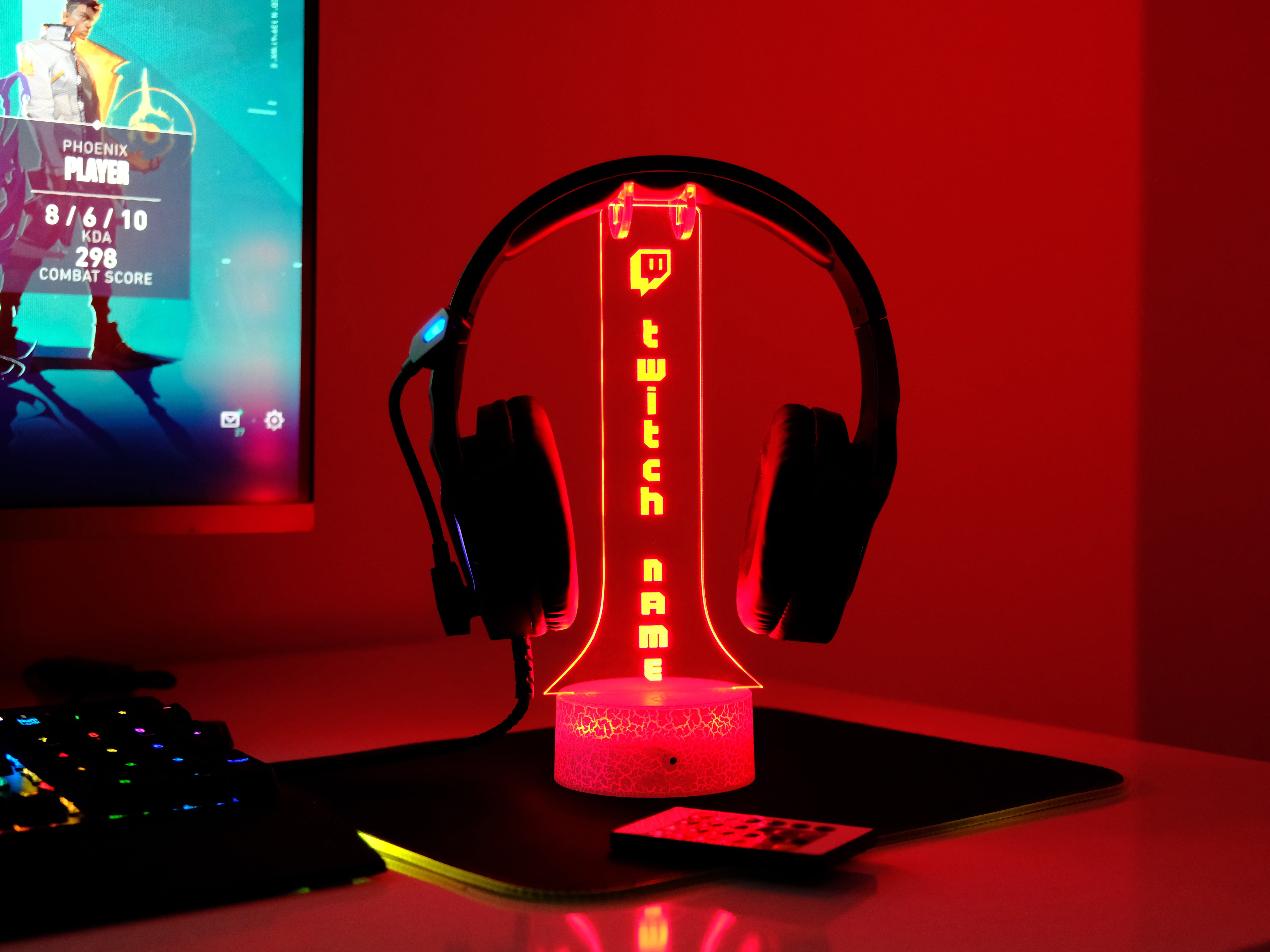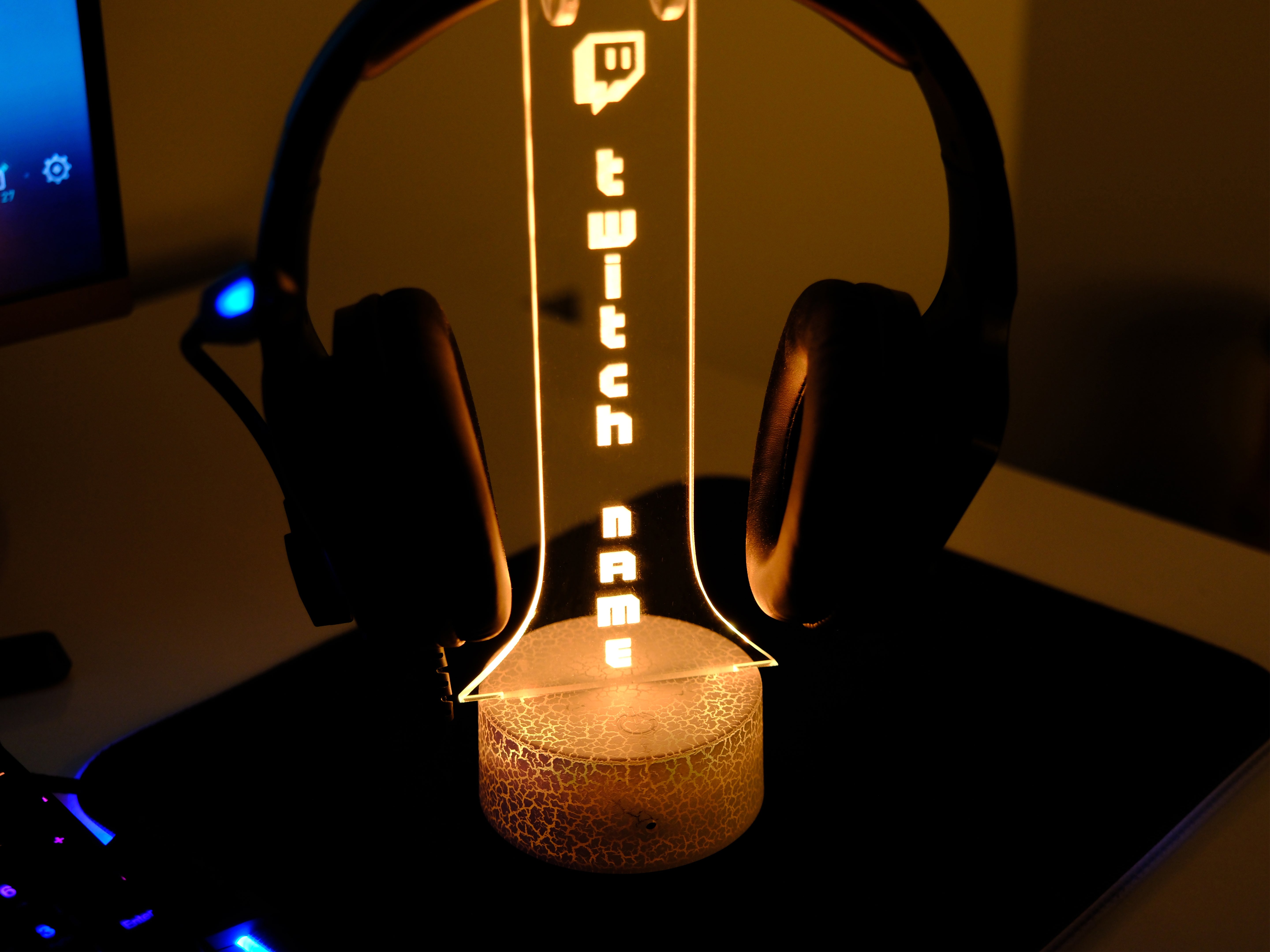 Twitch Headphone Stand – Personalized RGB Gaming Headset Holder for Streamers