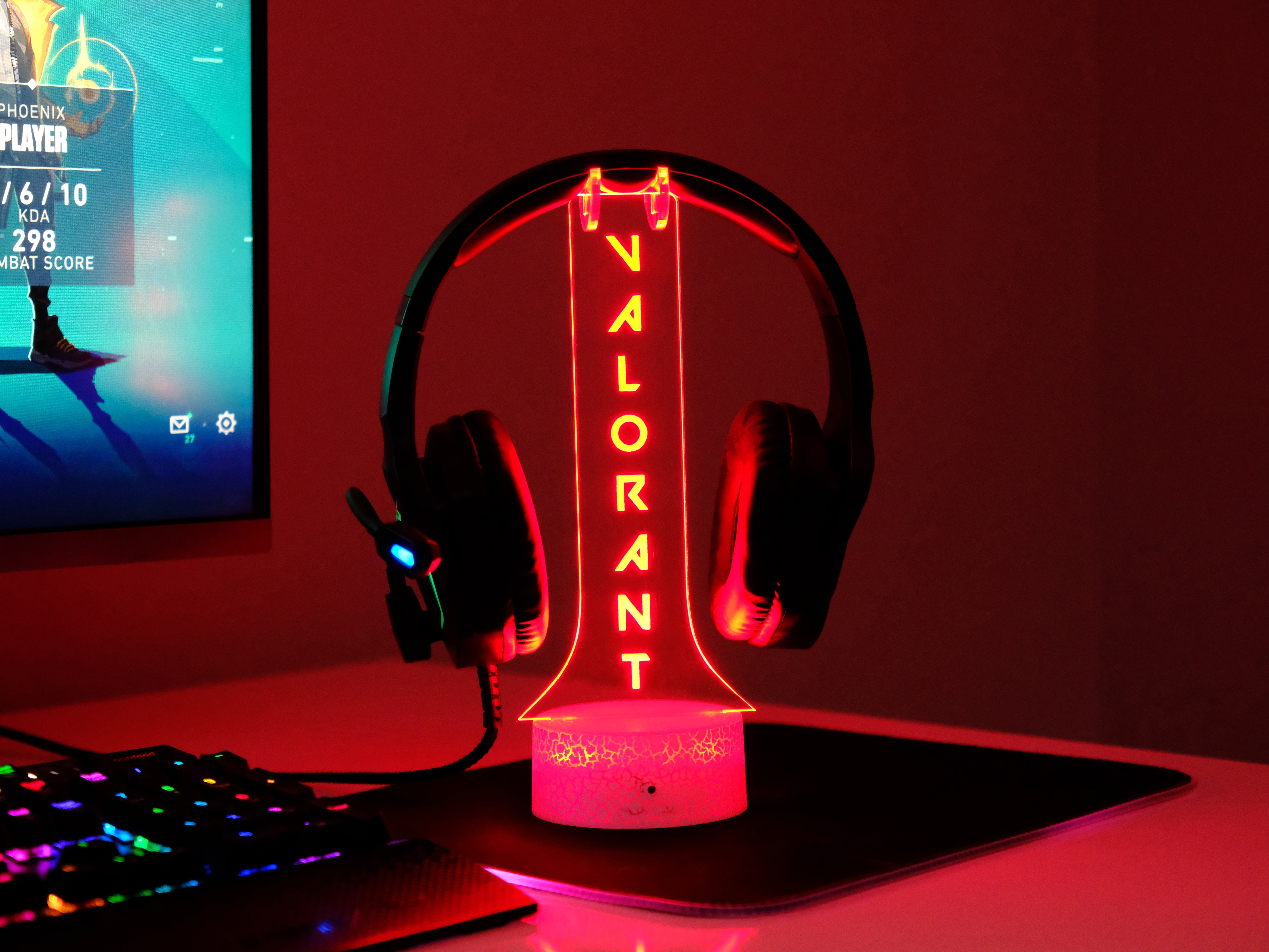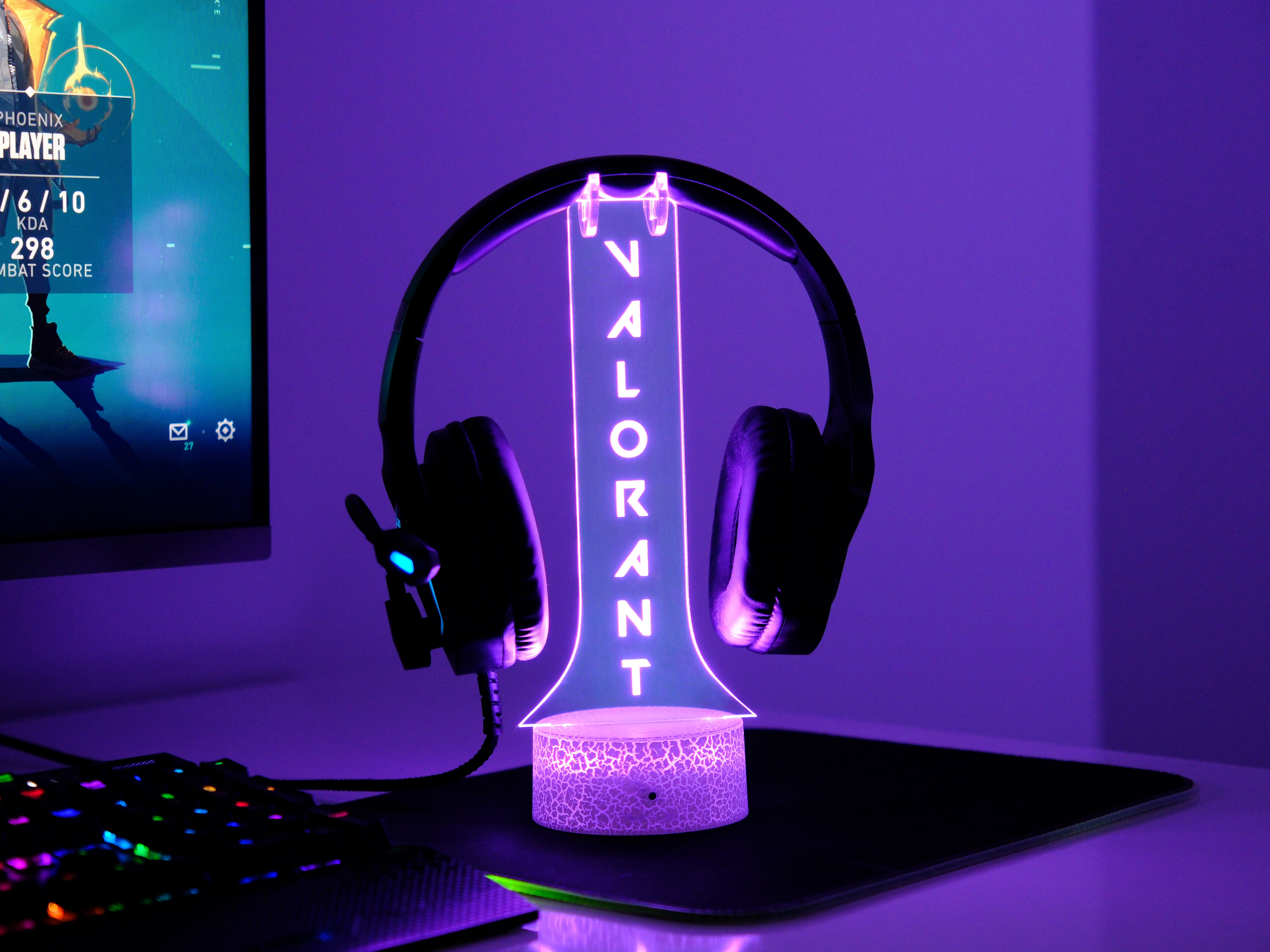 Valorant Gamer Tag Headphone Stand – Personalized RGB Gaming Headset Holder